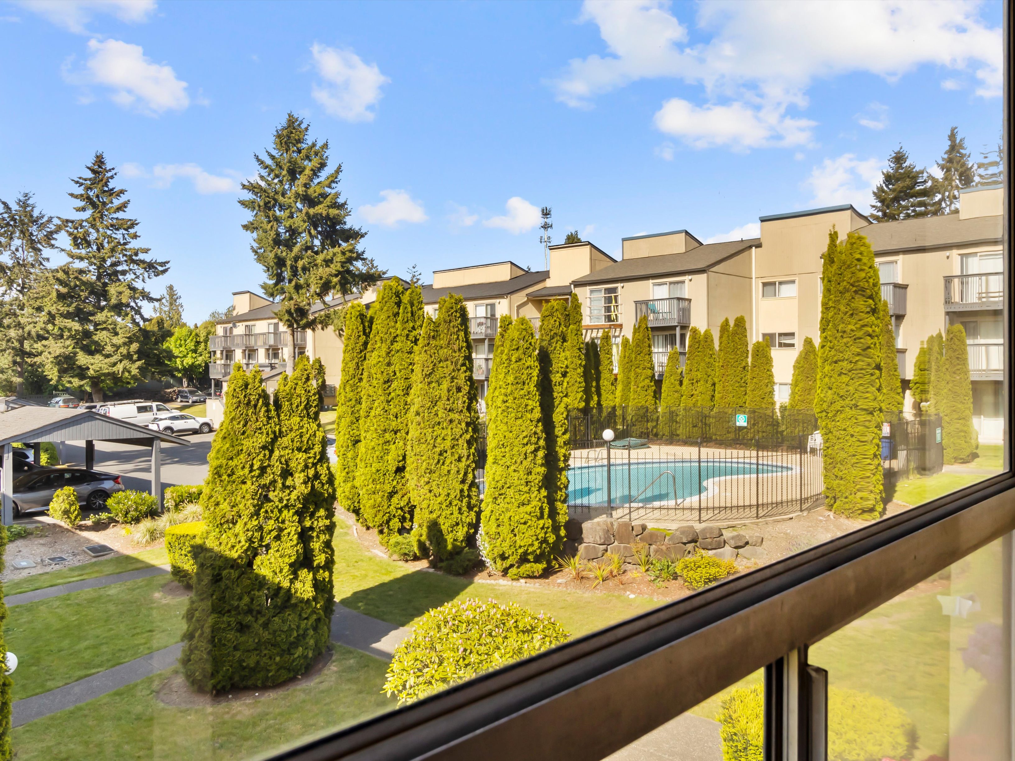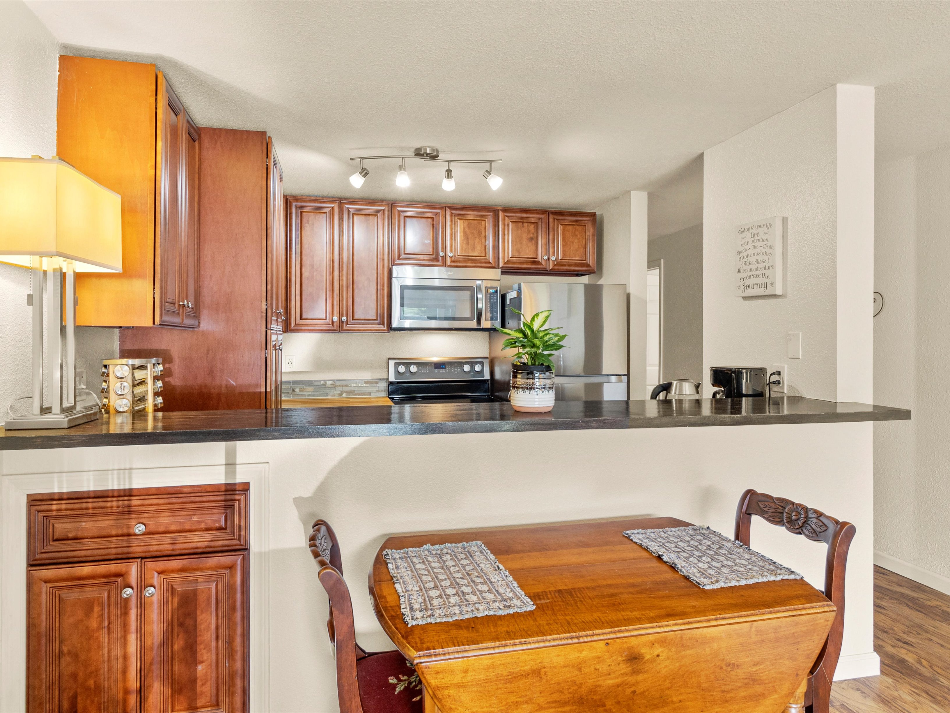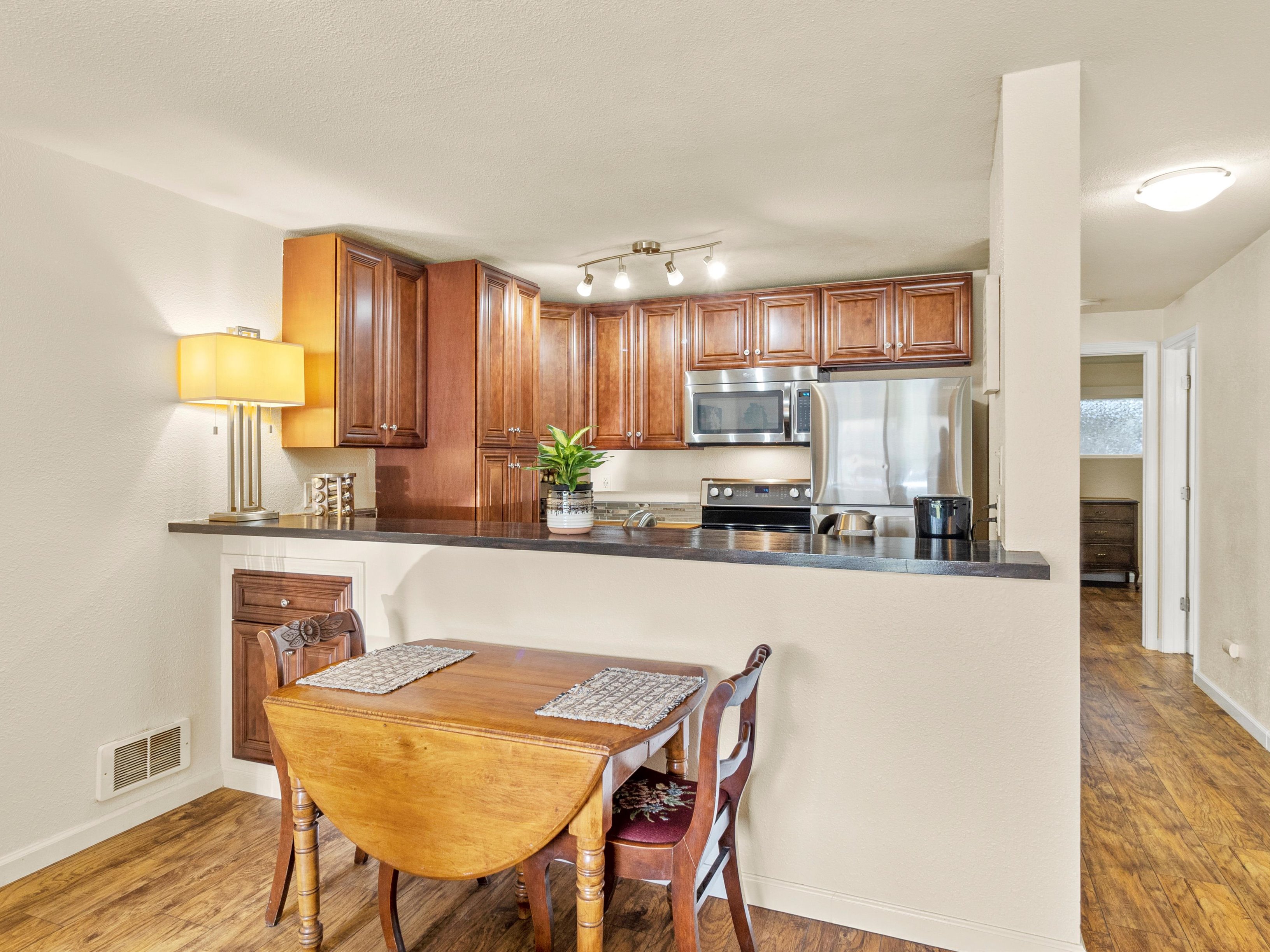 Welcome to this charming ground-floor condo in Liberty Lake community! Enjoy being within walking distance to shopping, dining, the new Light Rail, and more. This upgraded home features a gourmet kitchen with butcher block counters, stainless steel appliances, upgraded cabinets, breakfast bar, and a double oven. As a corner unit, it offers extra privacy and a lovely patio and grassy area just outside. Community amenities include a pool, lakeside terrace, and a reservable cabana for private events. This unit comes with a private carport, which is a huge amenity here. There is plenty of uncovered parking as well. New water heater in 2022, so no issues there! Move in and just pay for electric! Water/Sewer/Garbage is covered in HOA. Hurry Home!